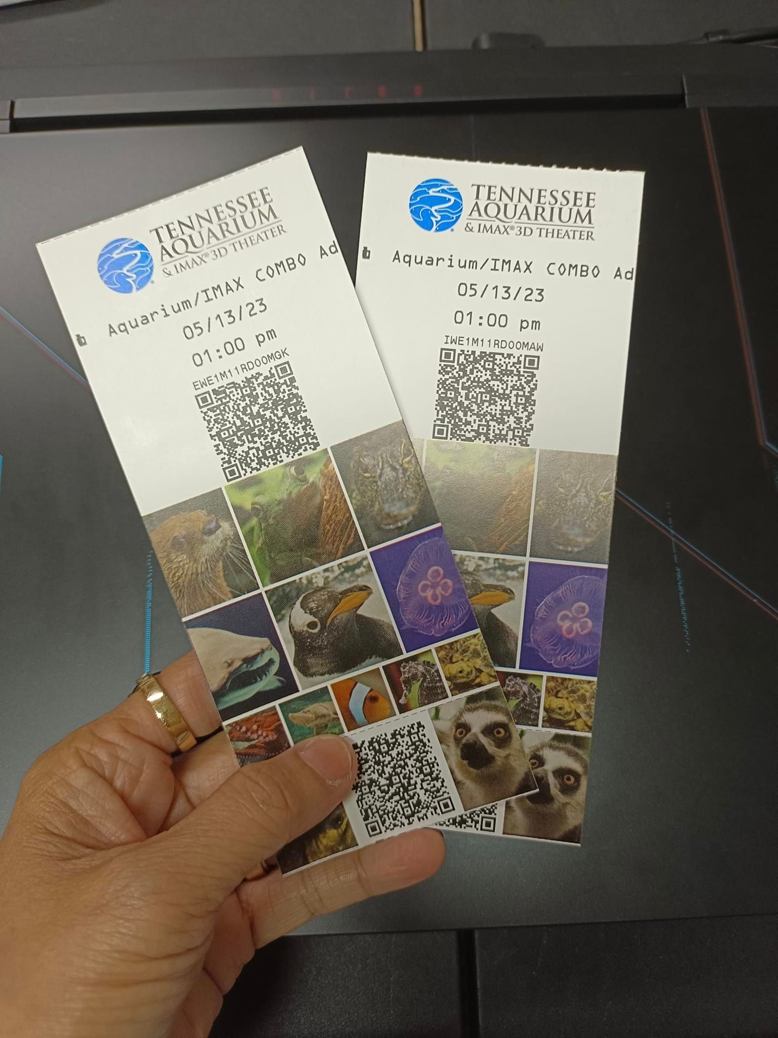 One of our friends gave us these tickets to watch a movie at the iMax Theatre and see the Tennessee Aquarium...a must place to go when in Tennessee!