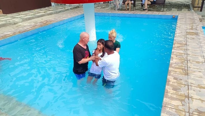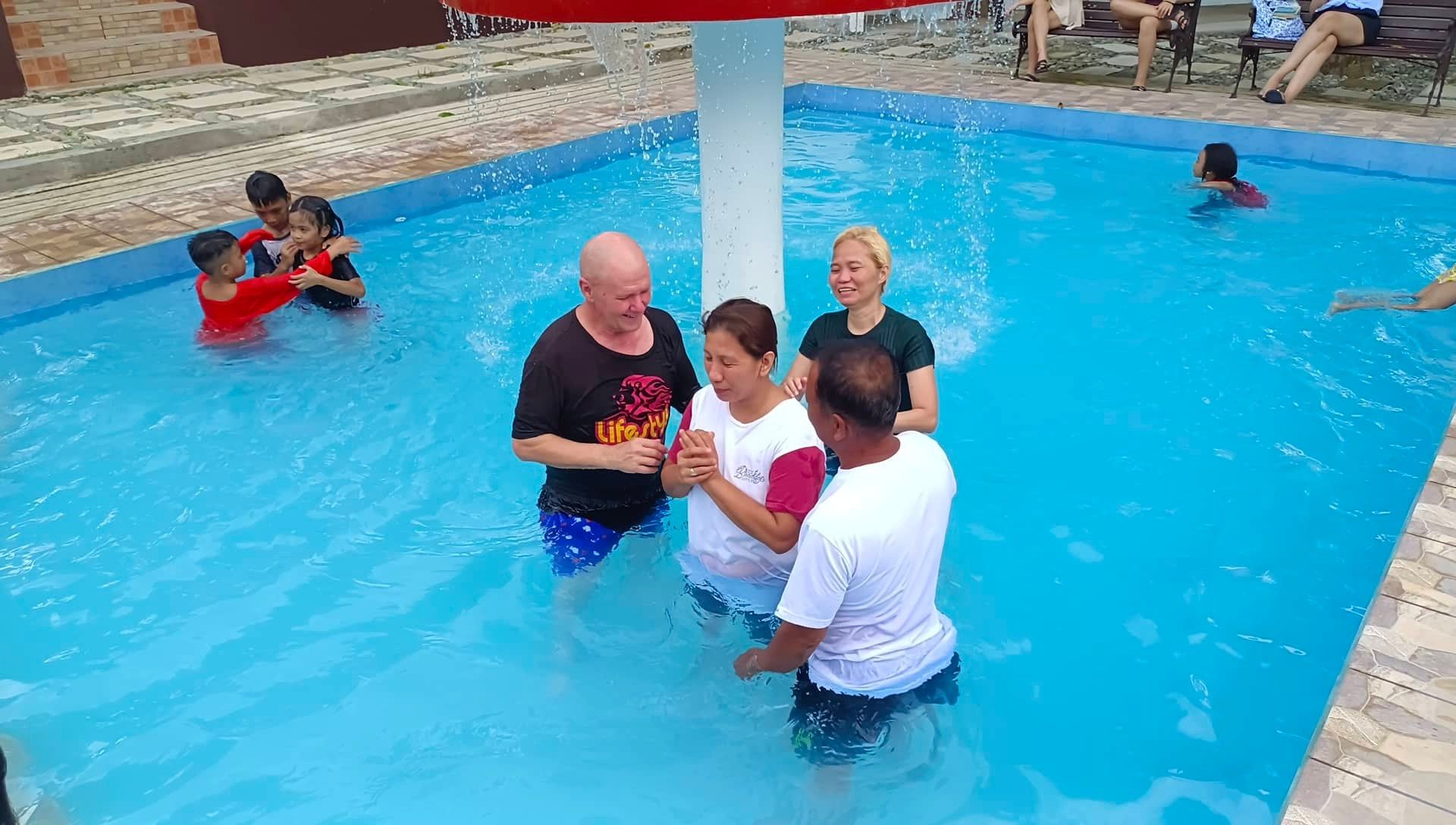 We opened another cell group this past month and we are excited to see people hunger for more of our Lord and live for Him. Our tribe held a water baptism this past weekend. 29 new believers were obedient to the word and Identified with the death of our Lord so now they can identify with His life!! Romans 6. Two precious women were baptized. Norris was abused and traumatized by a very bad experience overseas working as an OFW (Overseas Filipino Worker) Jen and I became aware of her because demons were showing up in their home and scaring the family day and night. By the grace of our Lord we were able to rid her and her home of all darkness, we then began a cell group in her home. In a few months almost all of her family came to Christ, and Norris was able to lessen her temper and explosive words. God also provided a job for her again and again. On Saturday when we baptized her she just cried and cried yelling oh thank you wonderful Lord oh thank you!!
