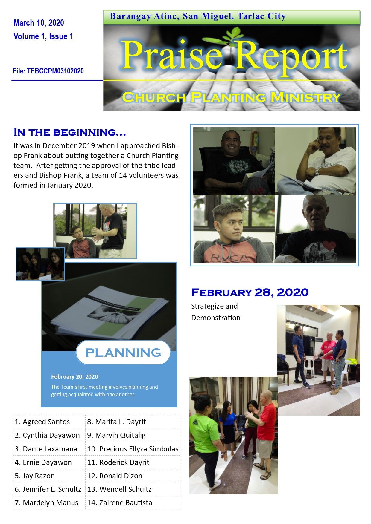 Welcome to our March 2020 Praise Letter! You are all in our prayers!