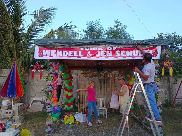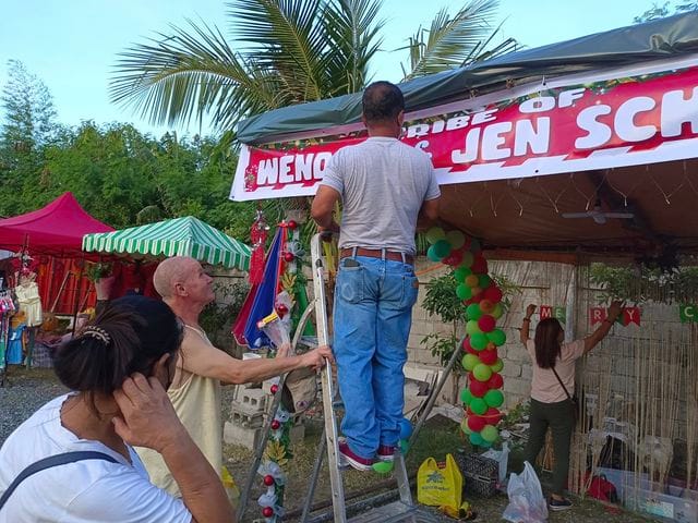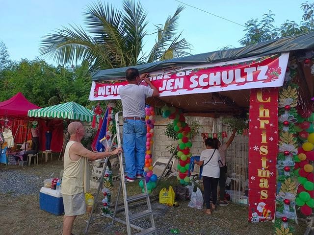 You may ask why have Jen and I been so busy? Well like you the holiday seasons seems to increase demands of giving, visiting and our presences. Here in the Philippines many churches have church service every day from December 1st until December 25th. At TFBC we have created a Christmas village for people to visit after the church service every night. This is a great opportunity for visiting people to get a free meal. It also allows some of our tribe to sell their goods, and make some extra money for Christmas. See all the pictures below. Now you can see why Jen and I are so busy. Service every night, and it seems like Christmas parties every weekend. Jen and I are hoping when Joshua Santos takes over for His Dad Bishop Santos next year, he will do away with the tribe thinking and we will all be one church. This will allow Jen and I to have less responsibilities as pastors of 150 plus people.